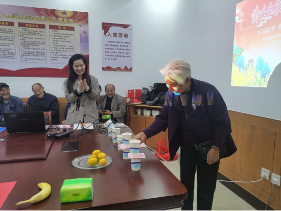 第三項(xiàng)是互動(dòng)游戲,《抽紙片》、《搶彩條》、《滾輪 大戰(zhàn)》。鍛煉退休老干部職工們的手腦協(xié)調(diào)能力、反應(yīng)能力、肢體協(xié)調(diào)能力和合作意識(shí),闖關(guān)成功的選手還有禮品獎(jiǎng)勵(lì)。大家踴躍參與,一張張笑臉隨處可見、一陣陣掌聲此起彼伏,現(xiàn)場(chǎng)變成了一片歡樂的海洋....整個(gè)活動(dòng)在歡聲笑語(yǔ)中落下帷幕。