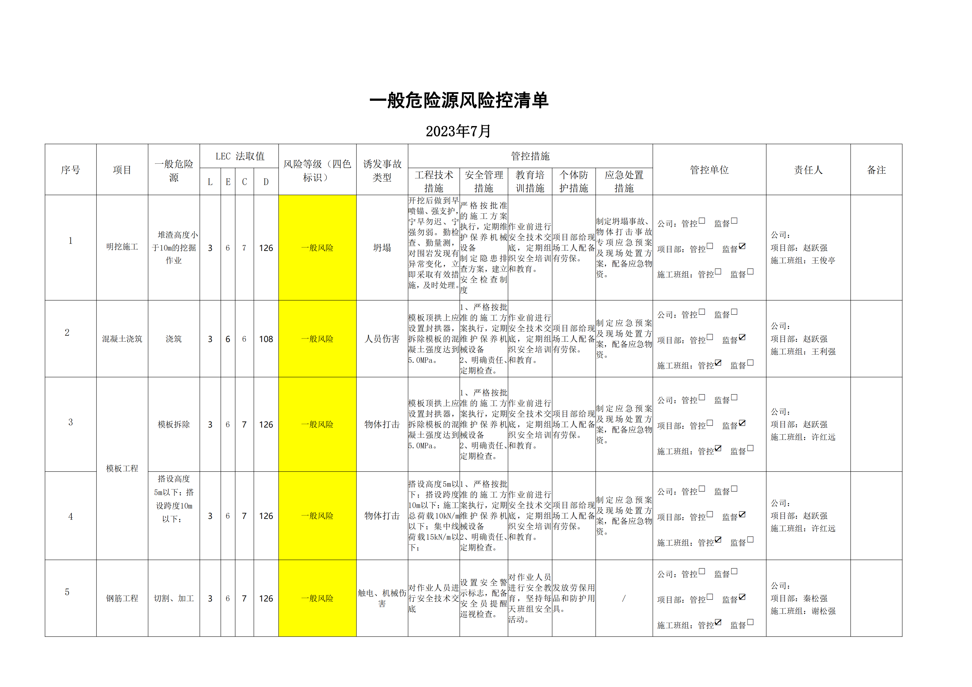 小浪底南岸灌區(qū)7標項目危險源風險分級管控清單(7月)